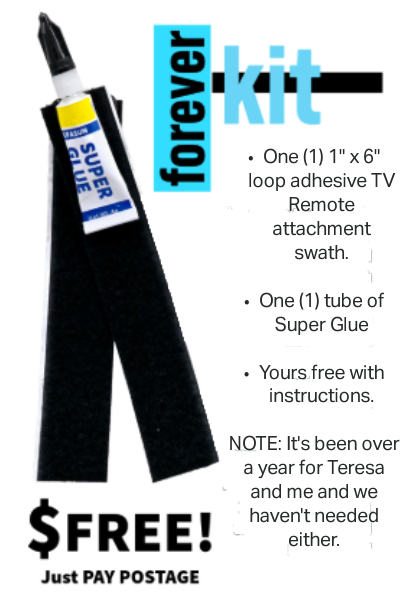 - Detachment from your remote o the magnets? Got you covered there, too. Just purchase a Forever Kit for zero, zip, nada dollars and pay the shipping when you check out. Voila! In no time you’ll be back in business. You’ll receive instructions how to attach your new Velcro loop adhesive strip.