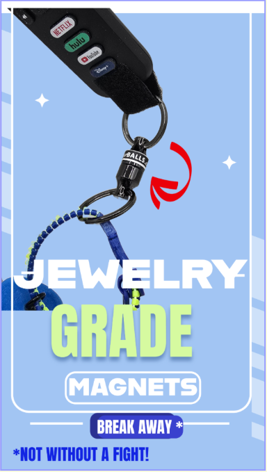 And, with their jewelry grade break-a-way magnets you, "The Fidgeteer" can leave the mother ship at will. You then return with a pleasant thwock! sound as the magnets reunite in Fidget harmony. And, don't forget, each fidget is engaged in a symbiotic relationship with your TV Remote. One literally "looks out for the other"; one to play the other to find the TV Remote (remote not included).